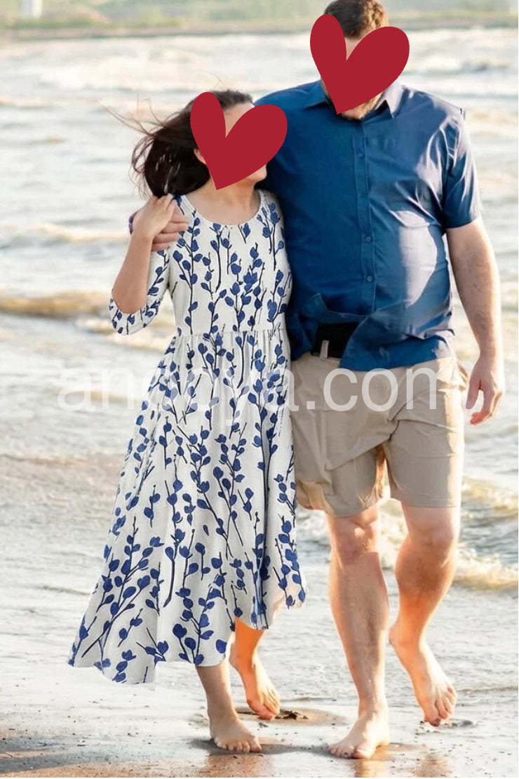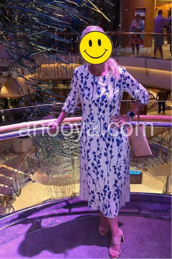 Embrace the serenity of seaside living in this Coastal Blue Botanical Print Midi Dress, a dreamy and elegant piece that captures the essence of Mediterranean charm. Crafted from lightweight, breathable fabric—likely cotton or linen blend—this midi dress features a crisp white base adorned with a delicate all-over print of navy blue leafy vines and botanical sprigs, evoking the beauty of coastal flora. The relaxed A-line silhouette flatters every figure, while the high waist and gentle gathering create a soft, flowing shape that moves gracefully with you. Short sleeves and a round neckline offer timeless comfort and ease, perfect for warm days by the sea. Designed with functional side pockets, it’s both stylish and practical—ideal for strolls through whitewashed villages, beachside brunches, or summer vacations.