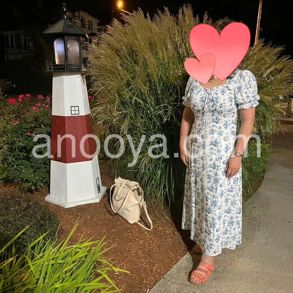 This dress is so pretty! The blue floral print is delicate and looks exactly like the photos. The puff sleeves are cute and make it feel more special. The fabric hangs nicely and the length is perfect for a comfortable midi fit. Overall, it’s well-made, fits well, and is a great purchase.