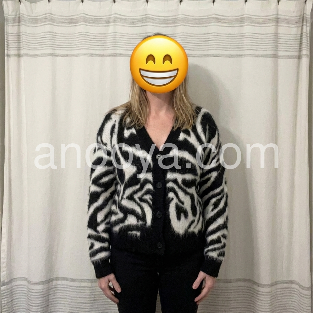 Elevate your wardrobe with this bold zebra-print knit cardigan crafted from a luxurious soft mohair blend. Its distinctive pattern adds a striking visual contrast, while the mohair fibers ensure lightweight warmth and a plush texture. Designed for both style and comfort, this cardigan is ideal for layering during transitional seasons, providing a sophisticated yet edgy statement piece to your collection.