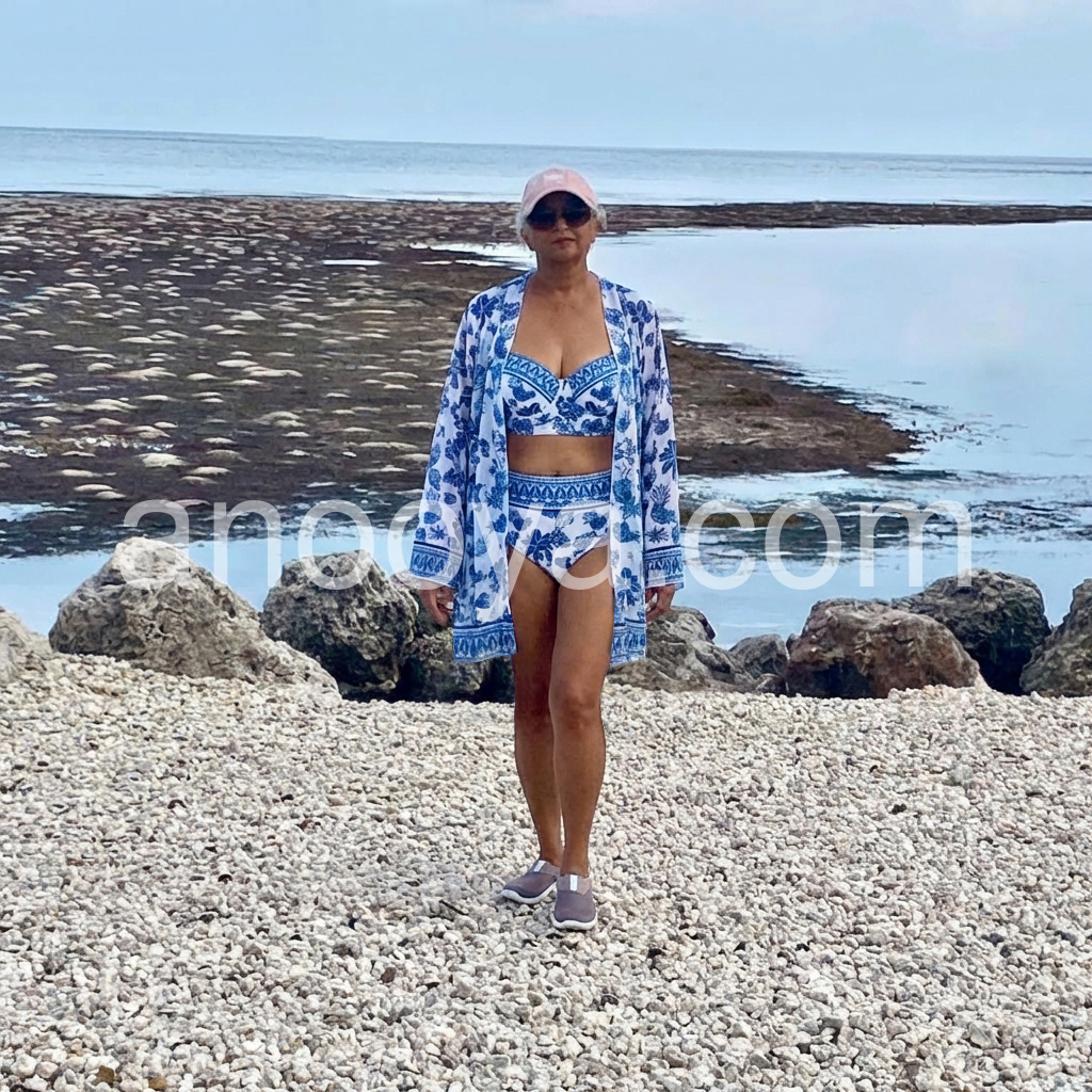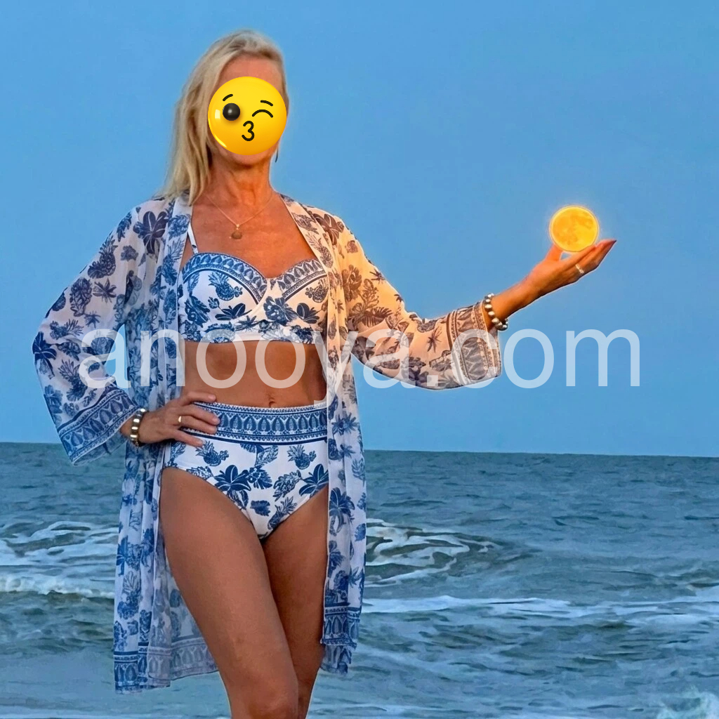 I absolutely love this swimsuit set! The blue-and-white pattern is so fresh, and the push-up style top gives a really flattering shape. The matching cover-up adds that perfect beach vibe soft, lightweight, and easy to wear over my bikini. Overall, it looks just like the photos and feels comfortable for a full day at the shore.