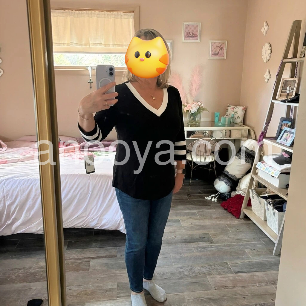 This top exceeded my expectations! The stitching is neat, the fabric is thick and durable, and the black and white design is so chic. The V-neck is the perfect depth, the striped sleeves are well-made, and the fit is true to size. It’s comfortable, stylish, and goes with everything in my closet. I’ll definitely be buying more colors!