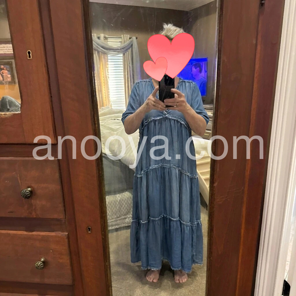This denim dress exceeded my expectations. The layers are really well made and the ruffle design adds a nice shape. It drapes beautifully and feels comfy and roomy, so it’s easy to wear all day. I’ve already gotten compliments and I’d definitely recommend it.